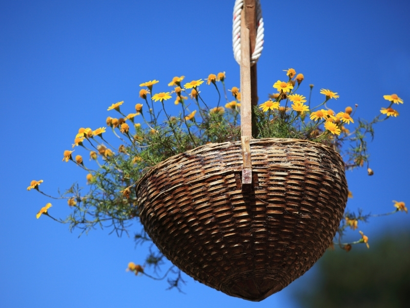 Alle bloeiende planten, maar ook mooie bladplanten kunt u in een hanging basket verwerken. Laat uw basket met de seizoenen meegroeien door uitgebloeide planten te vervangen door nieuwe seizoenbloeiers.Zo kunt u in het voorjaar viooltjes, primula’s,