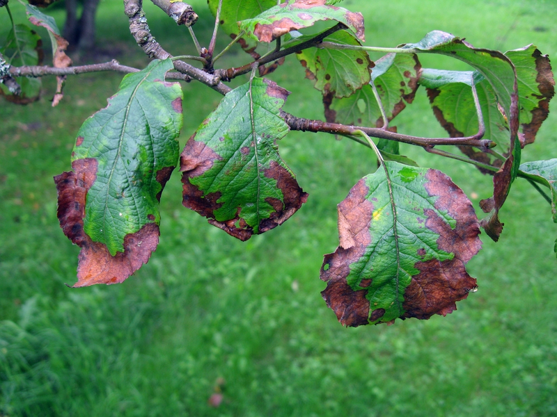 - Zomer en herfst – De bladeren zullen bruin of zwart worden en uitdrogen. De bladeren zien er na een regenbui vaak zilverachtig uit. Dit komt door bacterieslijm dat zich vermengt met regenwater.